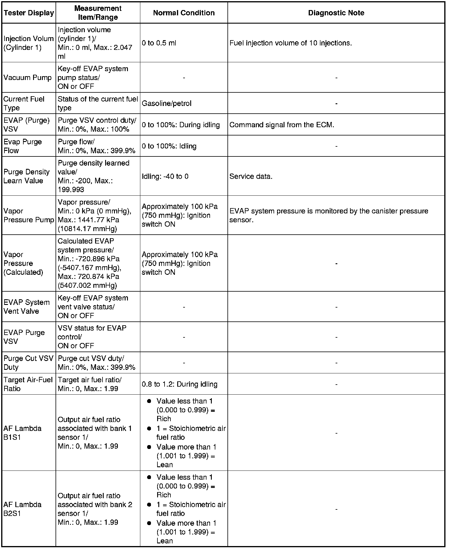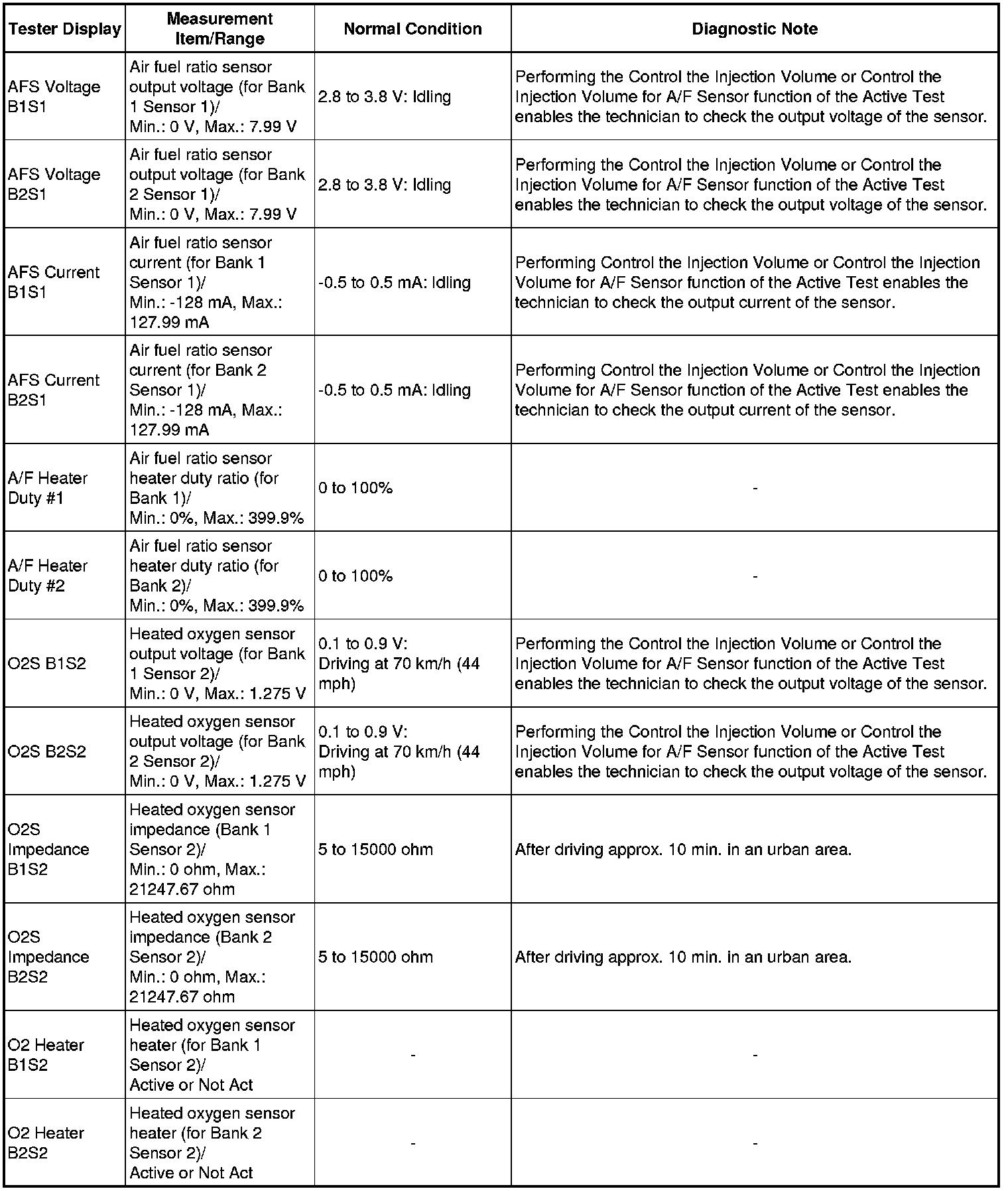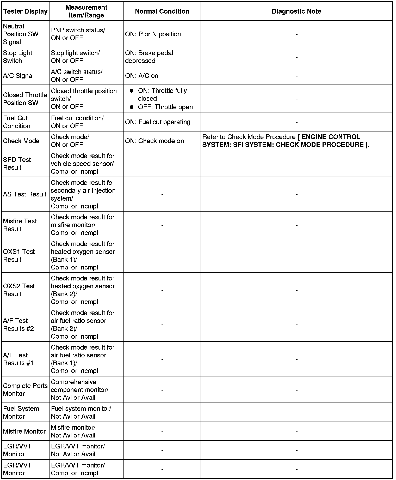 Normal Condition: If no conditions are specifically stated for "idling", the shift lever should be in N or P, the A/C switch should be off and all accessory switches should be off.