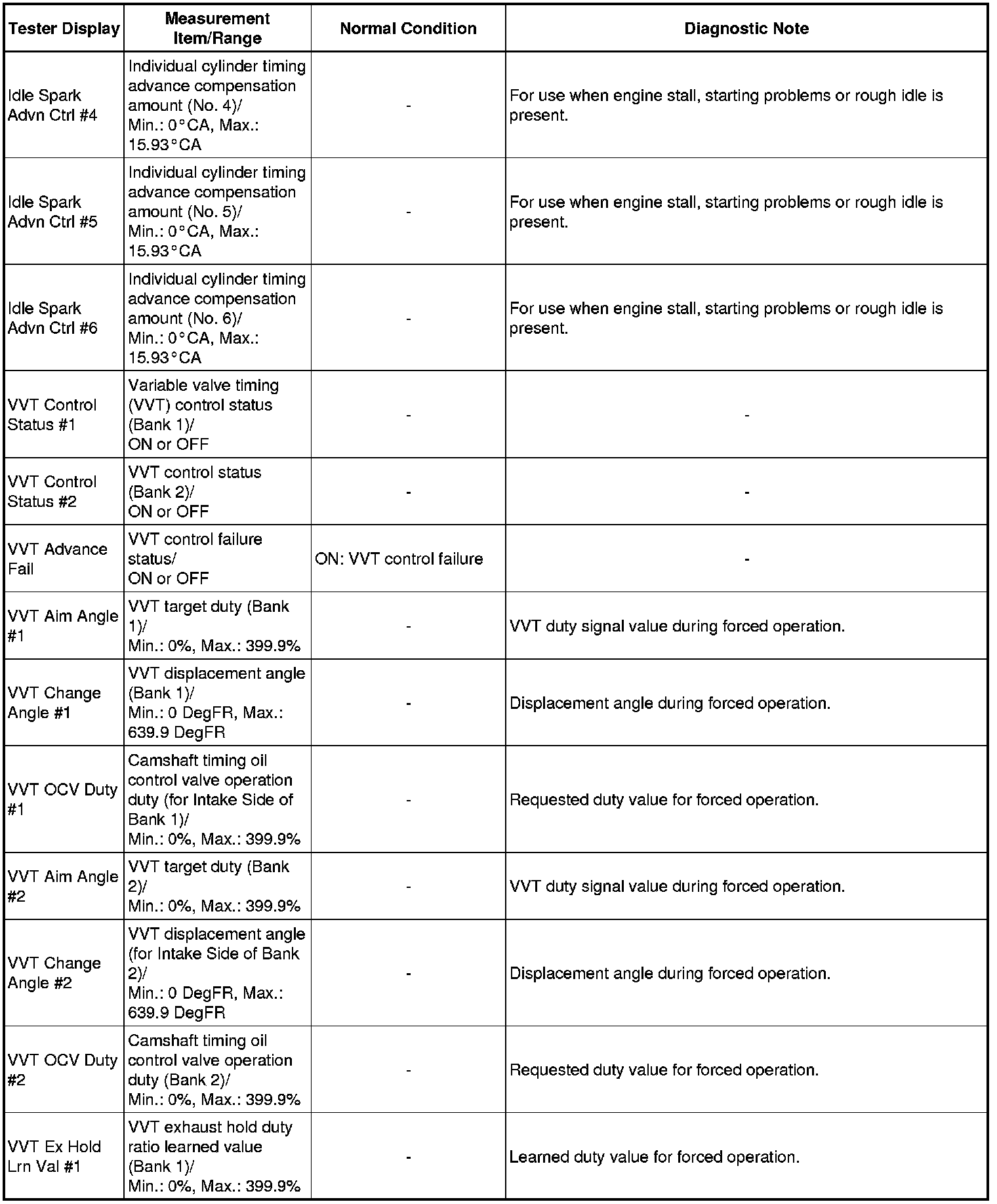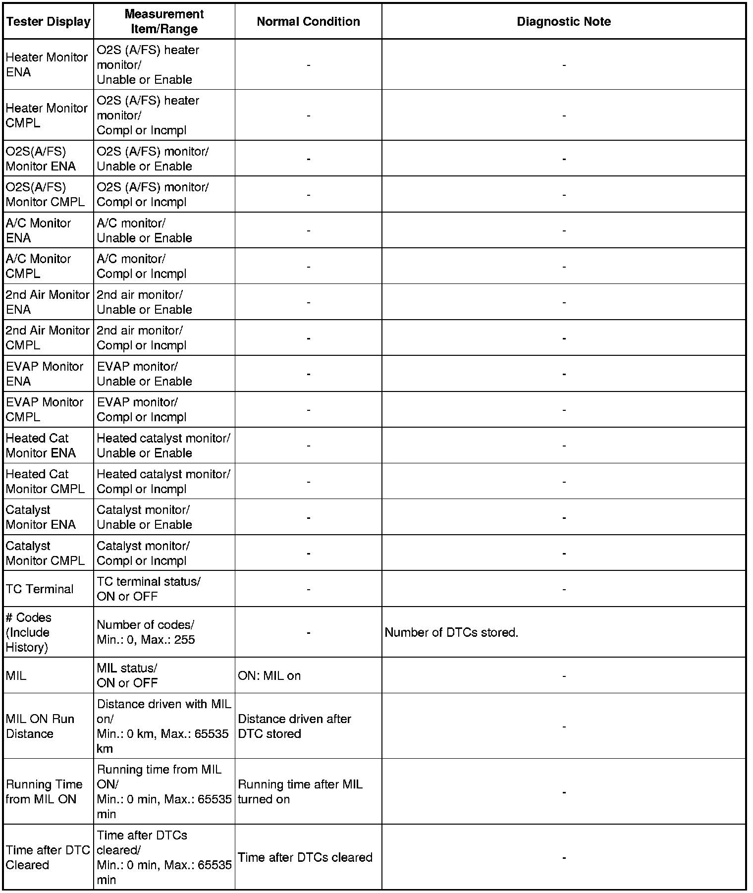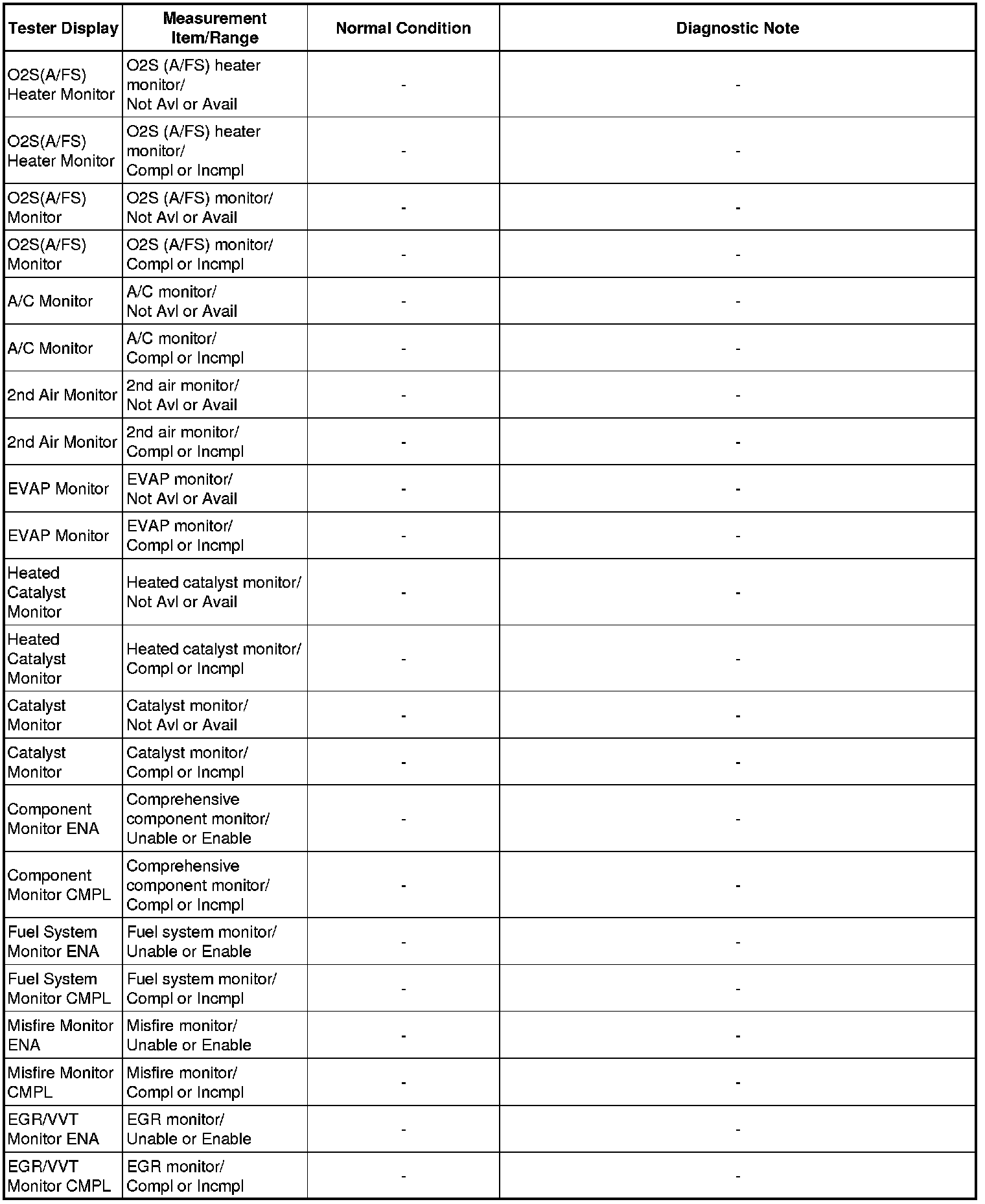 Normal Condition: If no conditions are specifically stated for "idling", the shift lever should be in N or P, the A/C switch should be off and all accessory switches should be off.