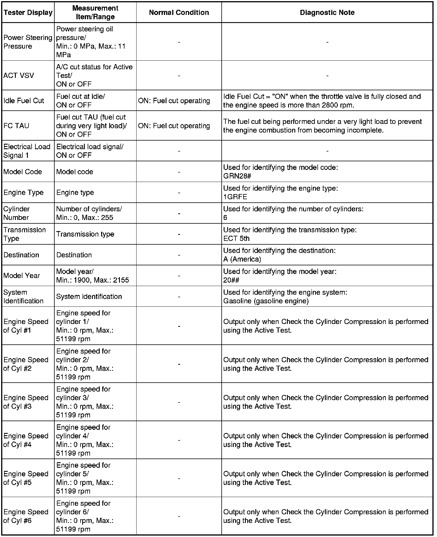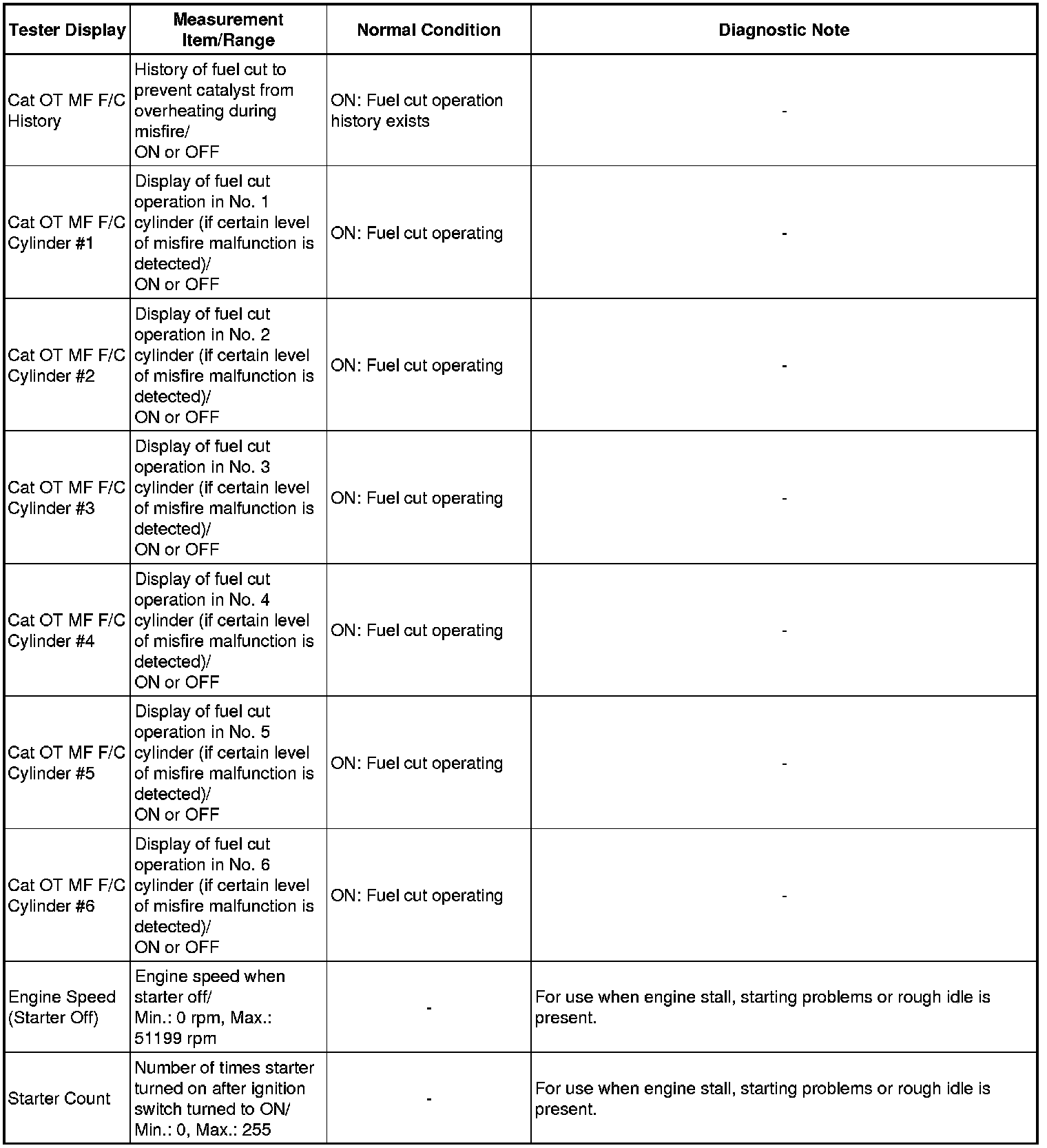 *2: When cranking the engine, the speed of each cylinder is measured.