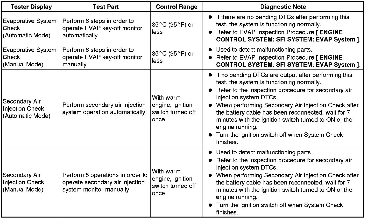 (e) Perform the system check by referring to the table below.