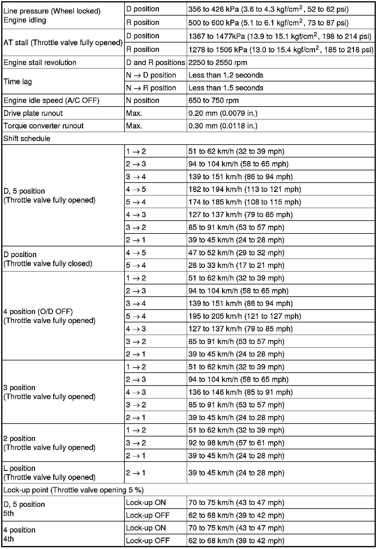 SERVICE SPECIFICATIONS: A750E AUTOMATIC TRANSMISSION: SERVICE DATA