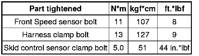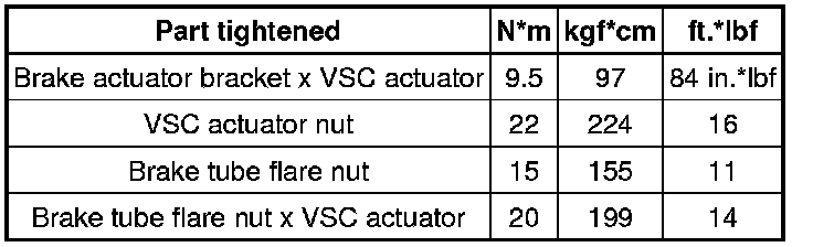 SERVICE SPECIFICATIONS: BRAKE CONTROL: TORQUE SPECIFICATIONS