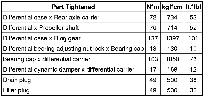 SERVICE SPECIFICATIONS: DIFFERENTIAL: TORQUE SPECIFICATIONS