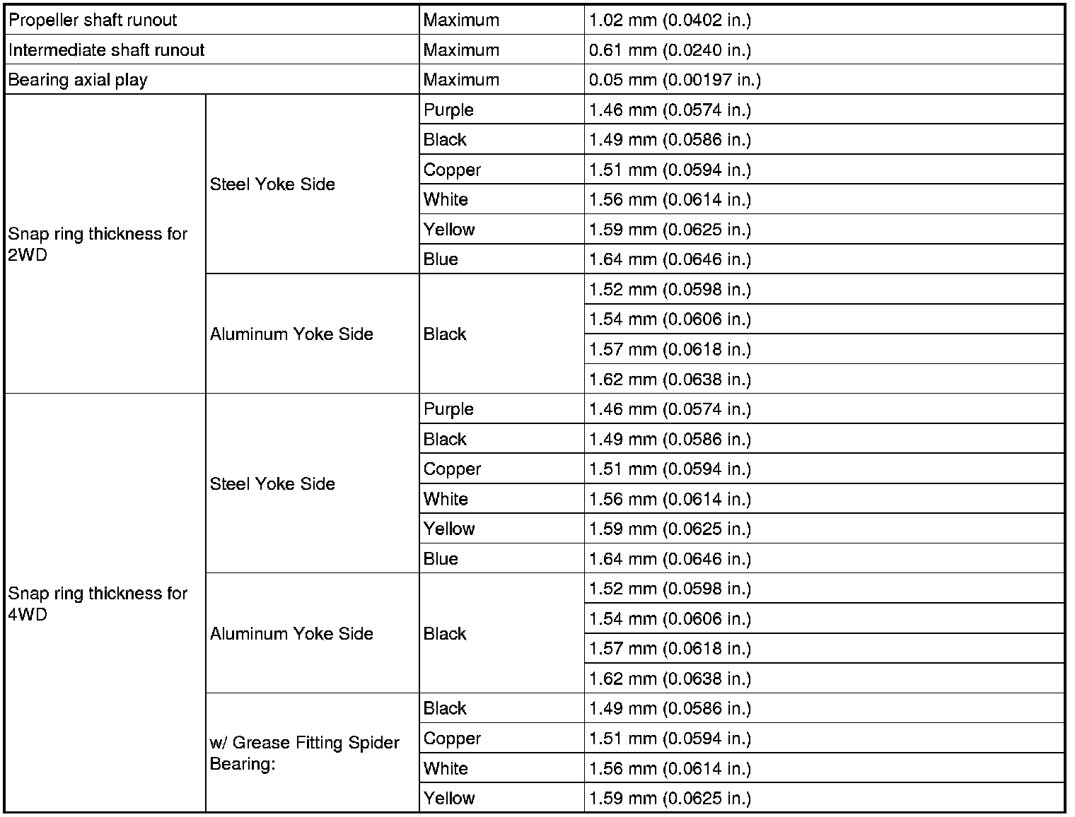 SERVICE SPECIFICATIONS: PROPELLER SHAFT: SERVICE DATA