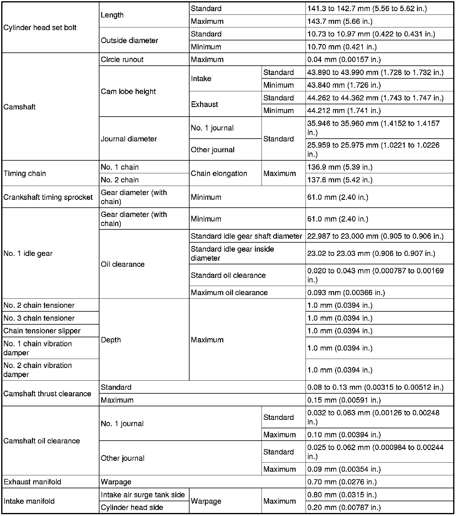 SERVICE SPECIFICATIONS: 1GR-FE ENGINE MECHANICAL: SERVICE DATA