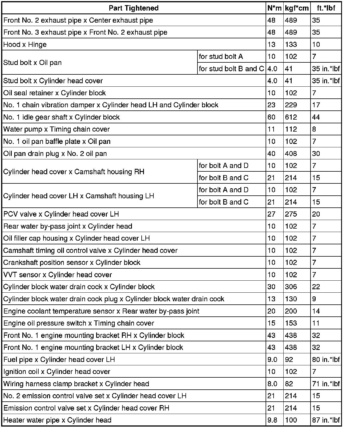 SERVICE SPECIFICATIONS: 1GR-FE ENGINE MECHANICAL: TORQUE SPECIFICATIONS