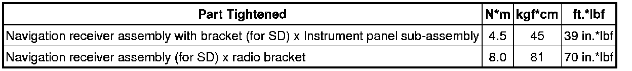 SERVICE SPECIFICATIONS: NAVIGATION: TORQUE SPECIFICATIONS