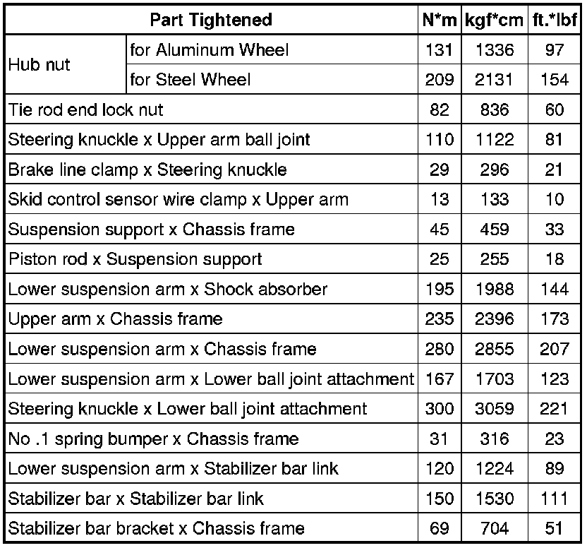 : TORQUE SPECIFICATIONS