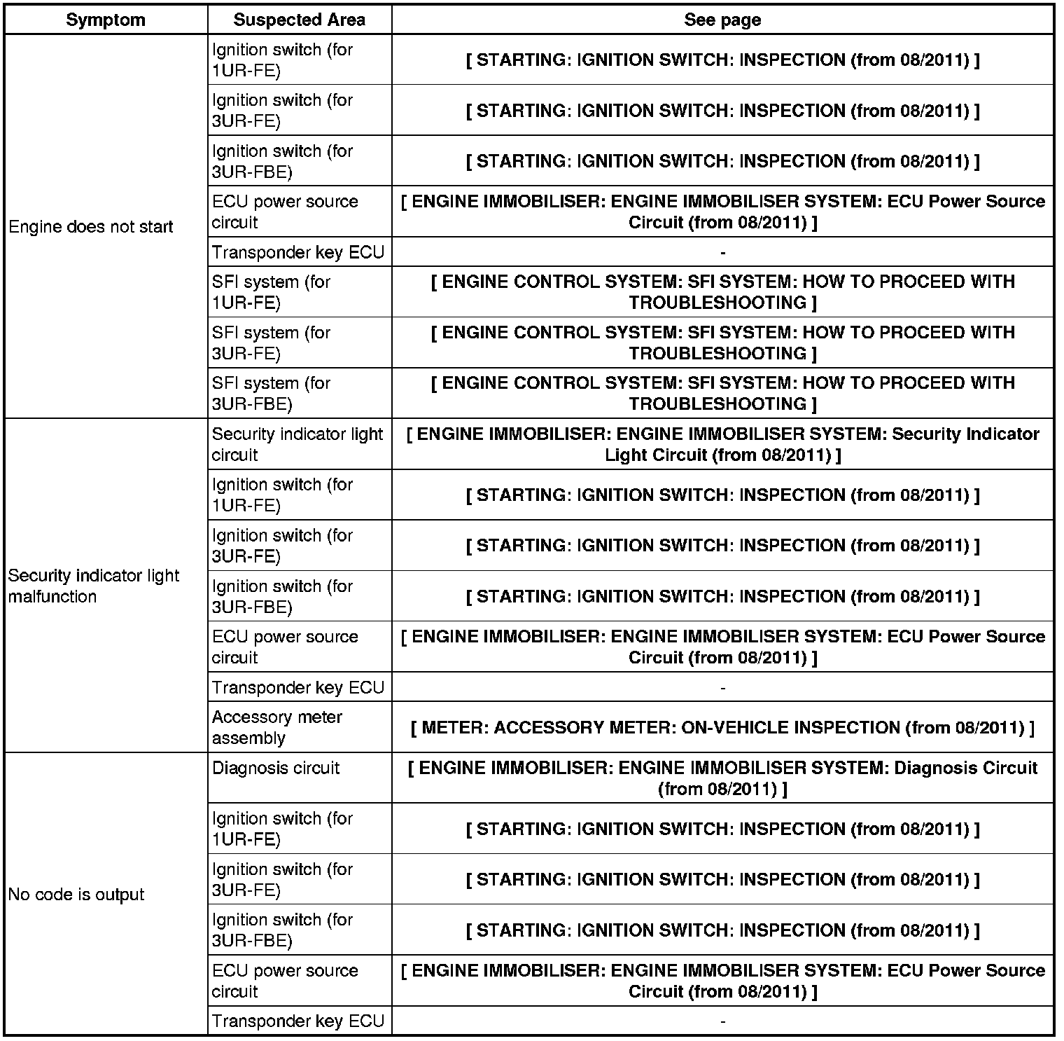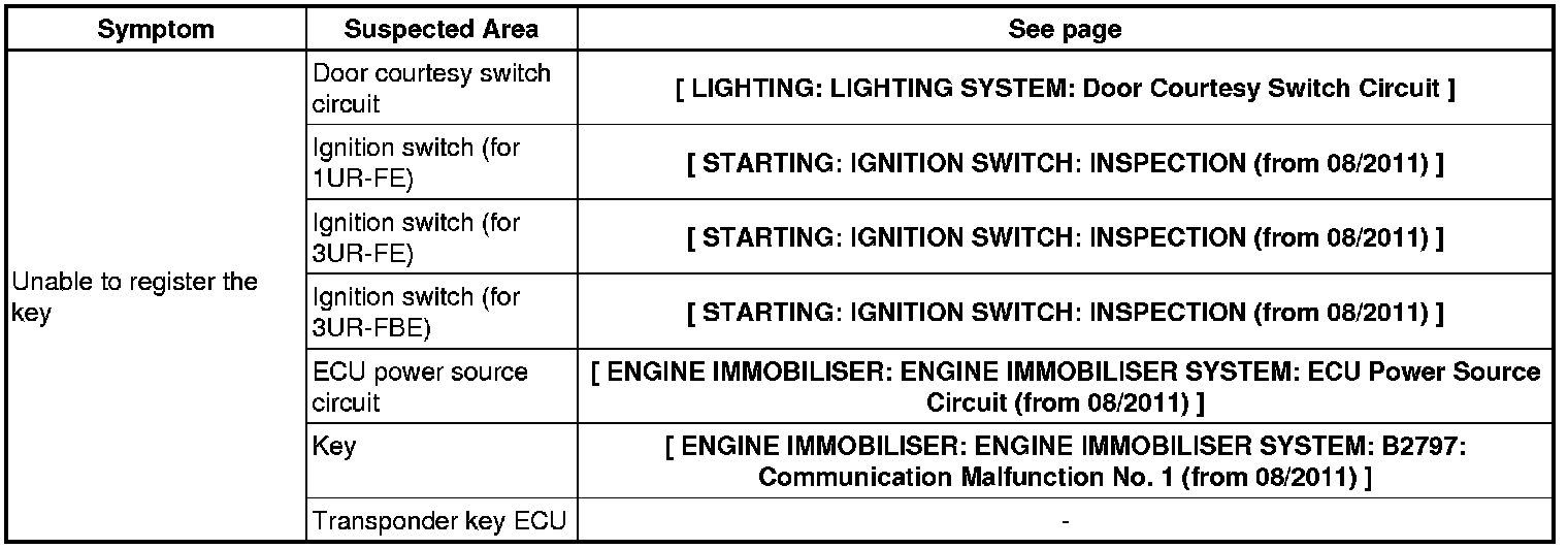 ENGINE IMMOBILISER: ENGINE IMMOBILISER SYSTEM: PROBLEM SYMPTOMS TABLE