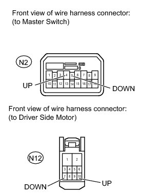 * If the manual UP/DOWN function does not operate, there may be a malfunction in the master switch, the driver side motor, or the harness or connector.