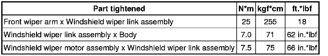 SERVICE SPECIFICATIONS: WIPER AND WASHER: TORQUE SPECIFICATIONS