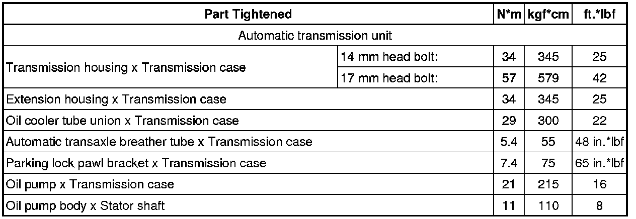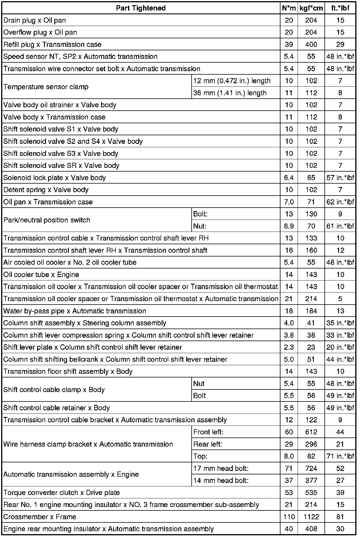 SERVICE SPECIFICATIONS: A760E AUTOMATIC TRANSMISSION: TORQUE SPECIFICATIONS