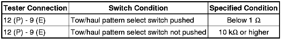 1. INSPECT TOW/HAUL PATTERN SELECT SWITCH