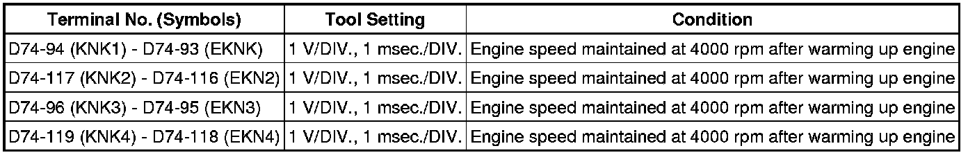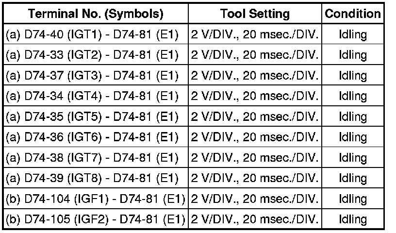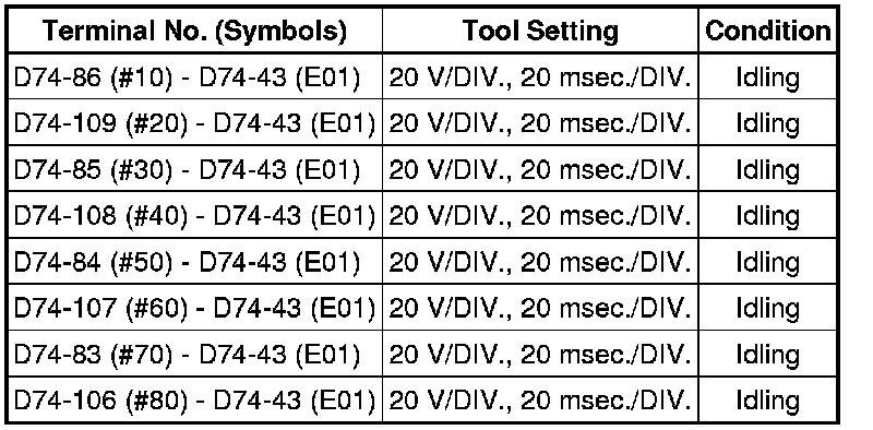 If the waveform is not similar to the illustration, check the waveform again after idling for 10 minutes or more.