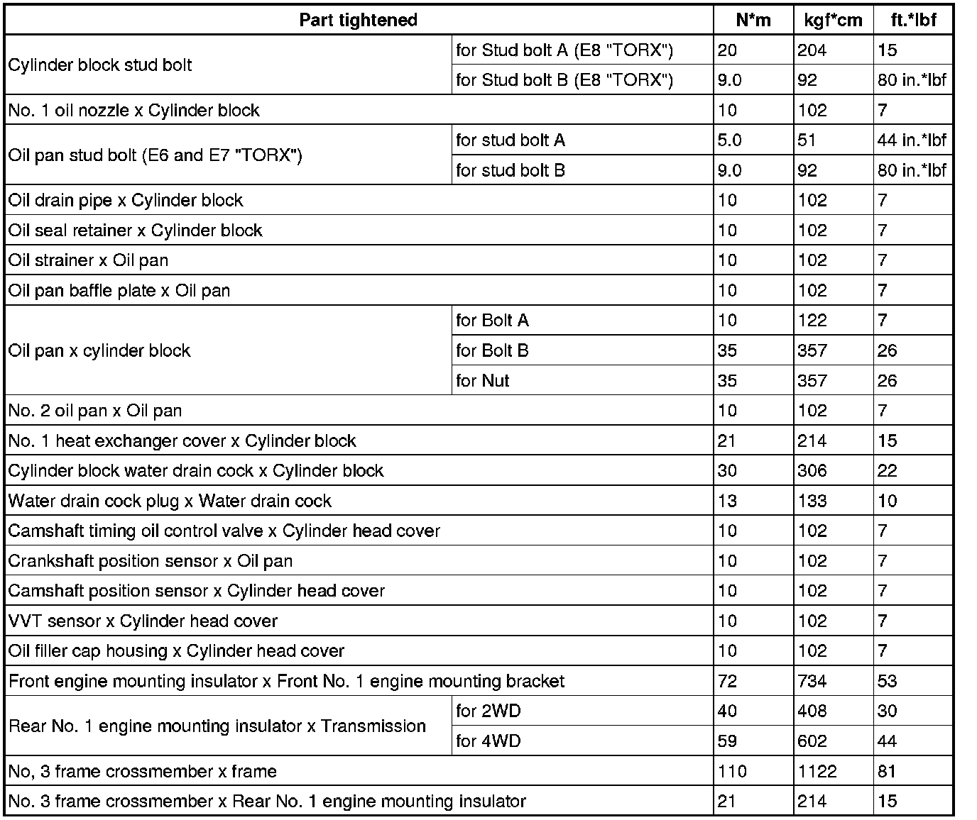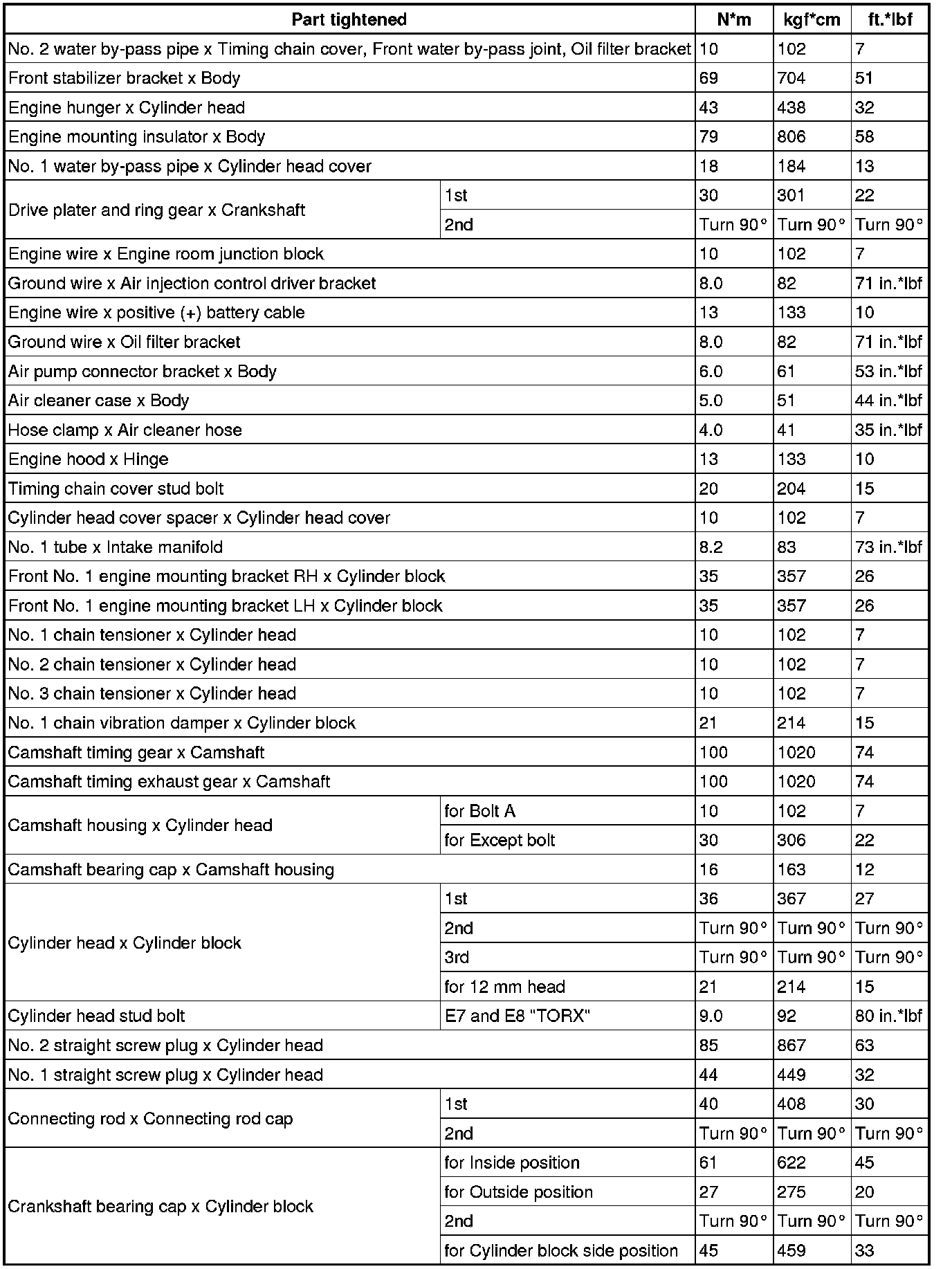 SERVICE SPECIFICATIONS: 3UR-FE ENGINE MECHANICAL: TORQUE SPECIFICATIONS