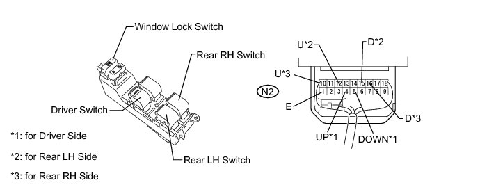 2. CHECK POWER WINDOW REGULATOR MASTER SWITCH ASSEMBLY (w/ Jam Protection Function)