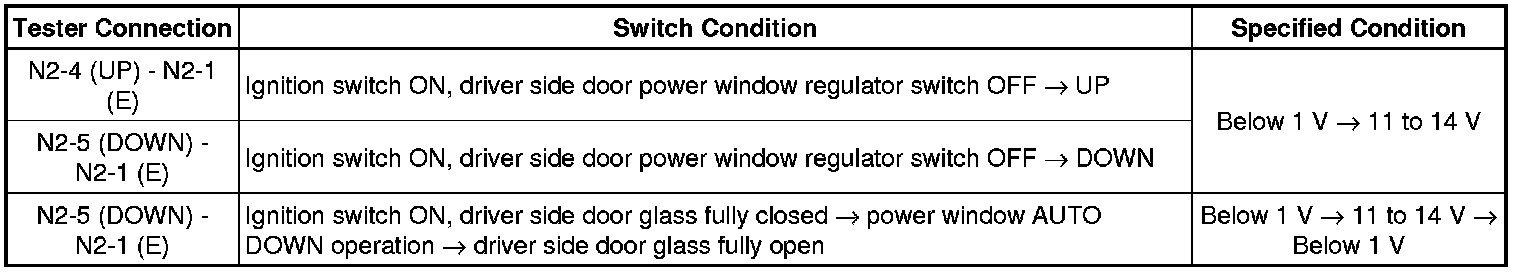 WINDSHIELD / WINDOWGLASS: POWER WINDOW MASTER SWITCH: ON-VEHICLE INSPECTION