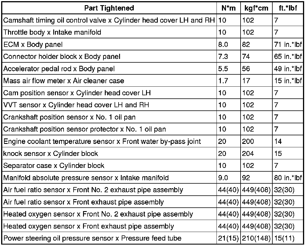 SERVICE SPECIFICATIONS: 1UR-FE ENGINE CONTROL SYSTEM: TORQUE SPECIFICATIONS