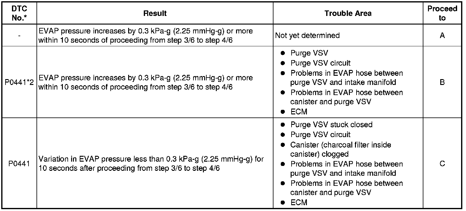 * *2: This result suggests that due to purge line blockage or purge VSV malfunction, the DTC was stored by the purge flow monitor while the engine was running, or that key-off monitor test result were nearly borderline values.