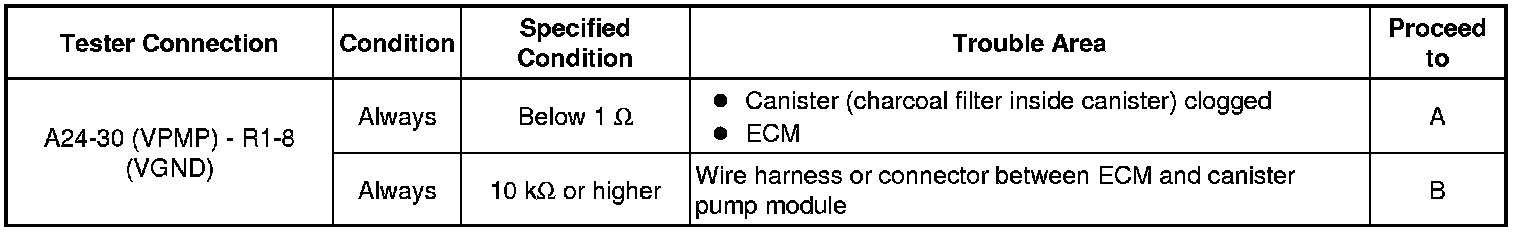 B -- CHECK HARNESS AND CONNECTOR (CANISTER PUMP MODULE - ECM)
