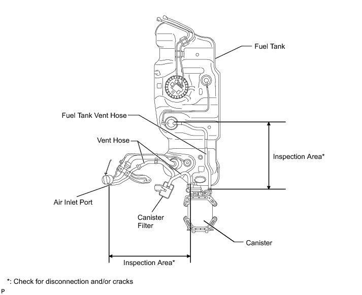 * When replacing the canister, check the canister pump module interior and related pipes for water, fuel and other liquids. If liquids are present, check for disconnections and/or cracks in the following: 1) the pipe from the air inlet port to the canister pump module; 2) the canister filter; and 3) the fuel tank vent hose.