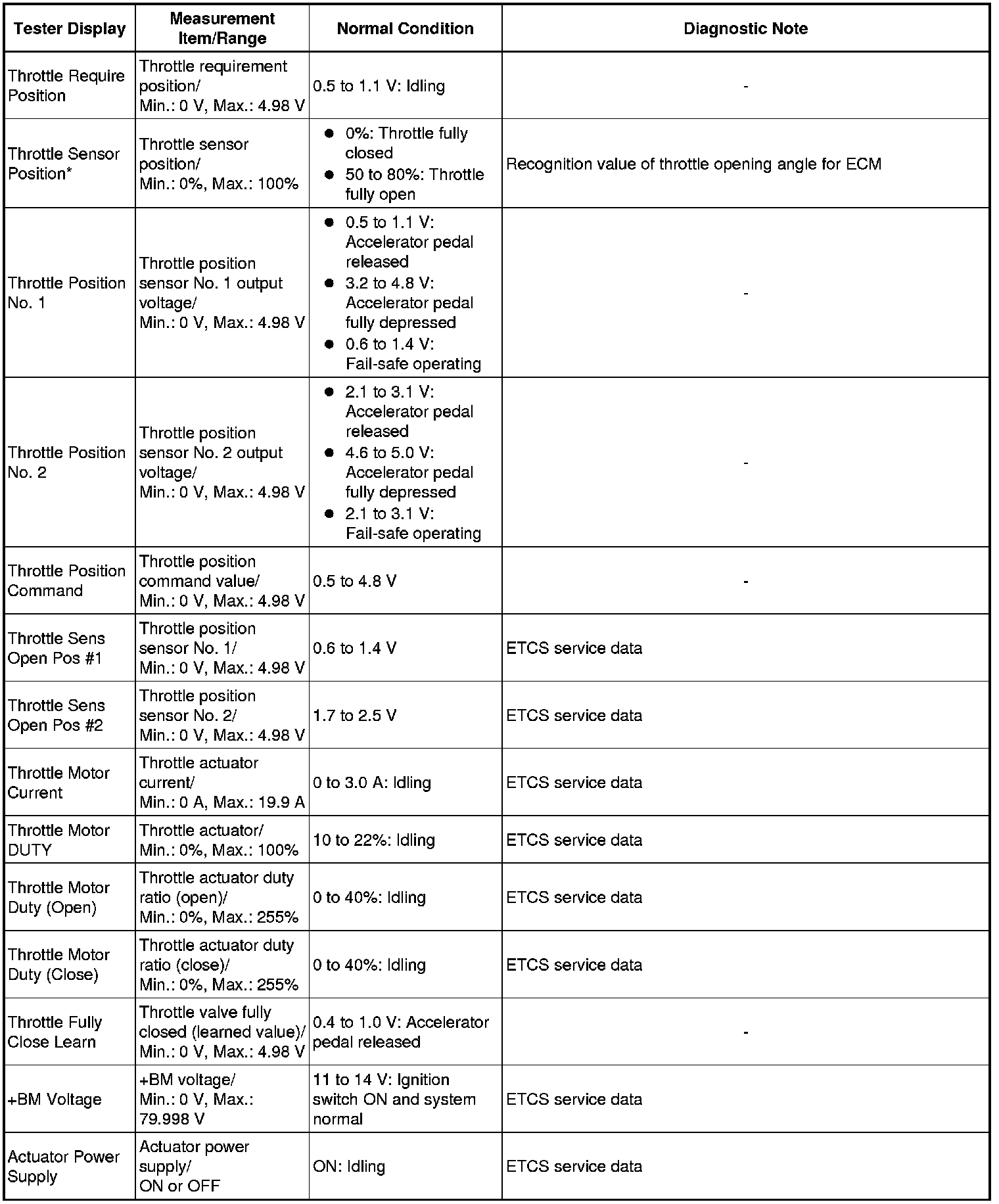 * *1: Excluding throttle valve opening percentage due to Idle Speed Control (ISC).