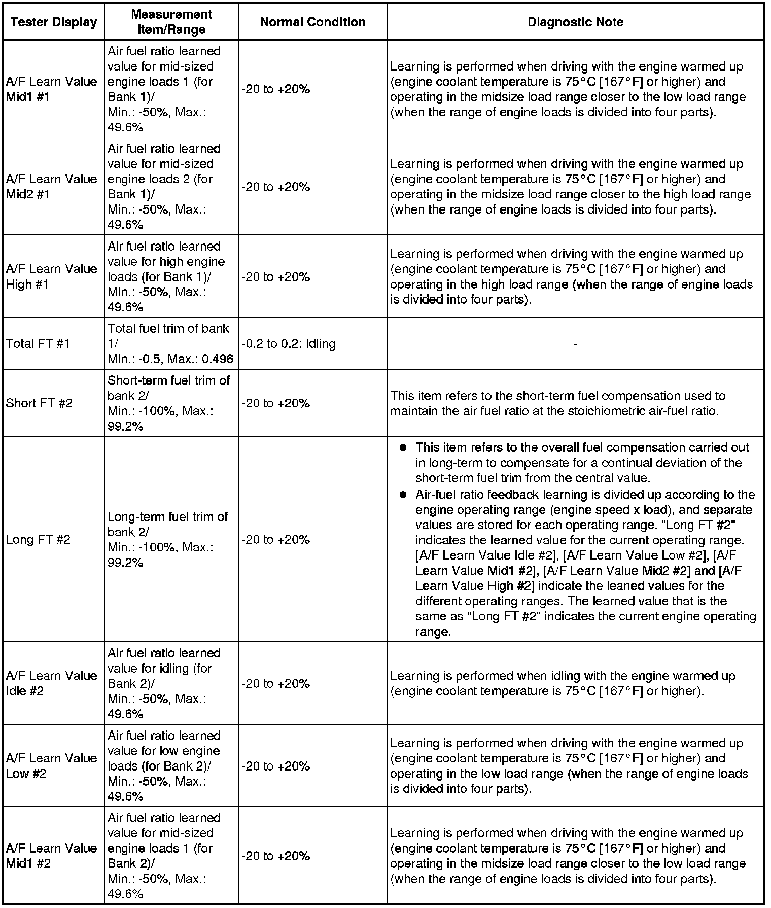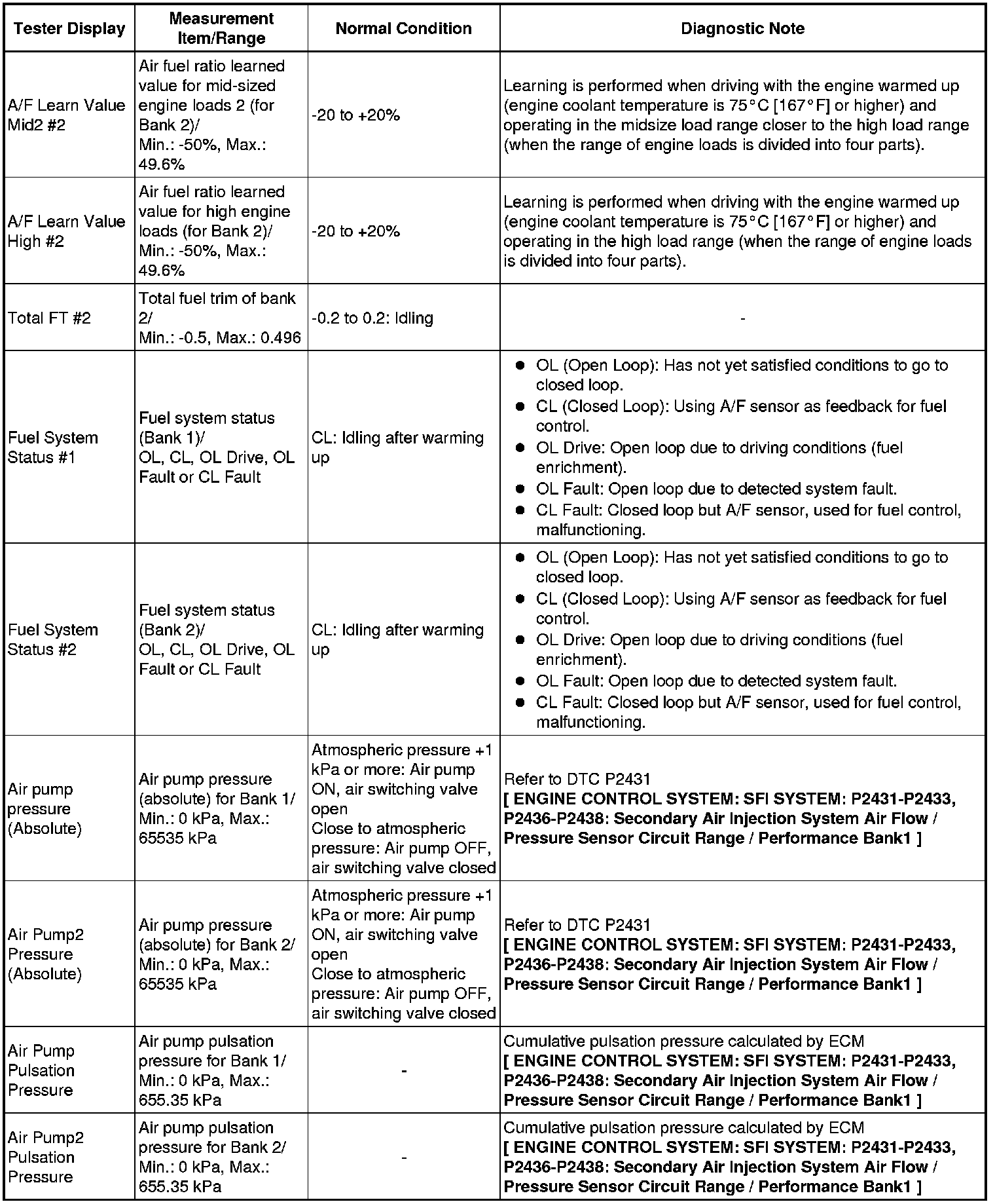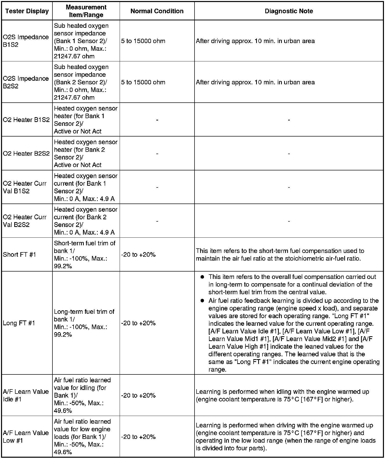 * Normal Condition: If no conditions are specifically stated for "idling", the shift lever should be in N or P, the A/C switch should be OFF, and all accessory switches should be OFF.