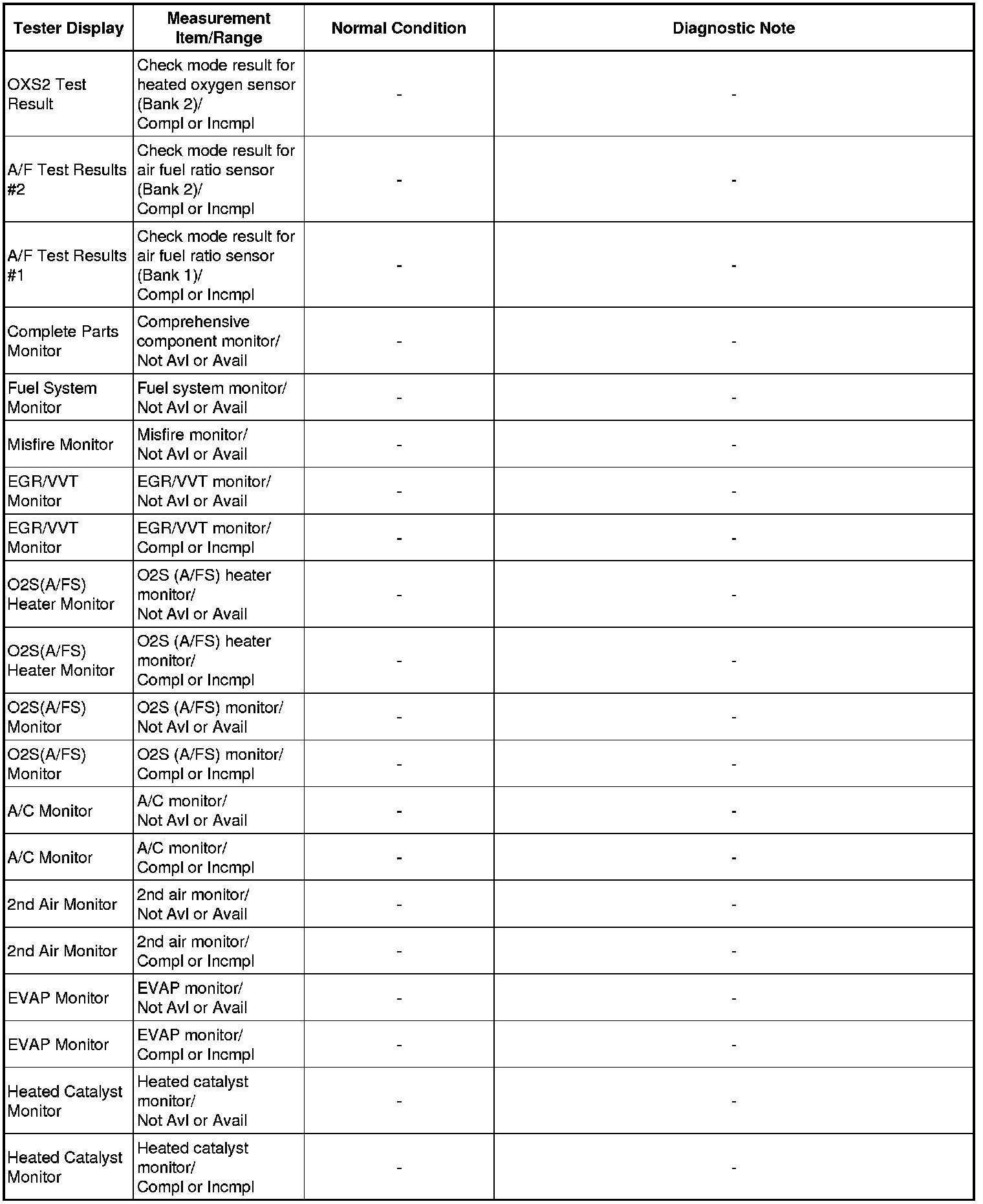 * If the display of the Data List's Catalyst OT MF F/C item is Not Avl, perform this Active Test with the vehicle stopped and the engine idling.
