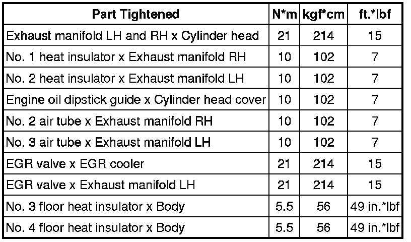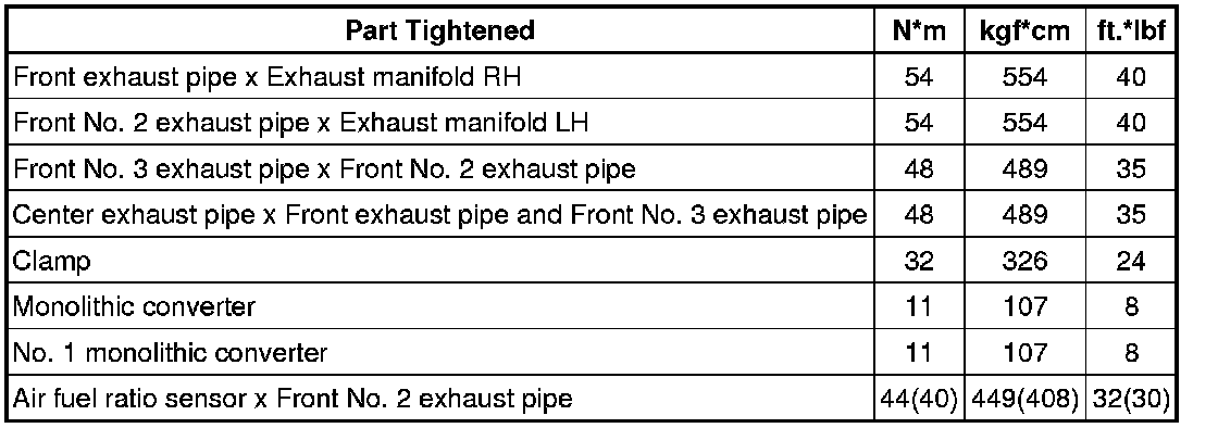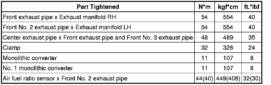 SERVICE SPECIFICATIONS: 1UR-FE EXHAUST: TORQUE SPECIFICATIONS