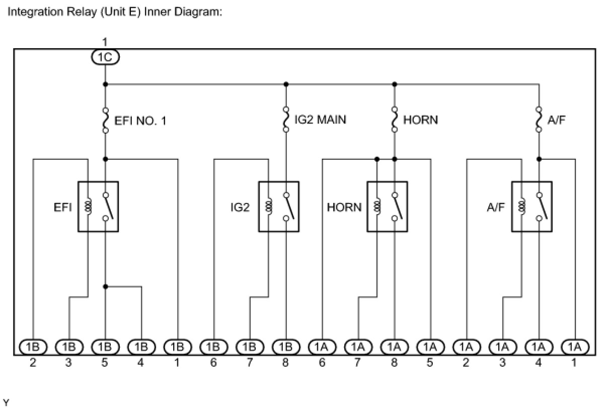 * The internal circuit of the integration relay is as shown in the illustration below. Inspect the integration relay using the following procedures.
