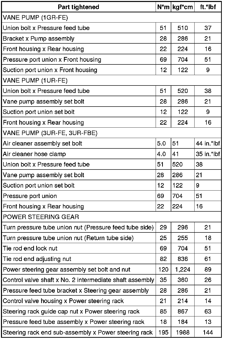 : TORQUE SPECIFICATIONS