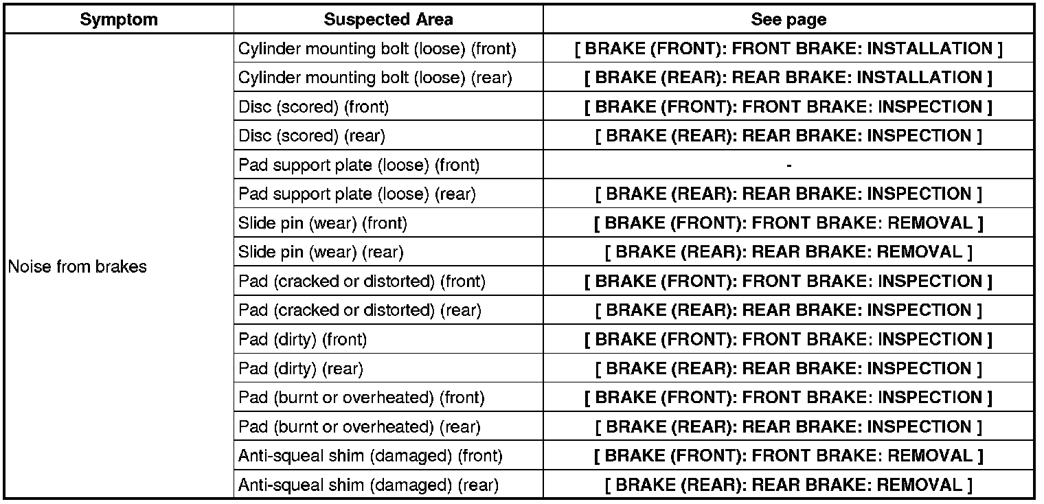 BRAKE SYSTEM (OTHER): BRAKE SYSTEM: PROBLEM SYMPTOMS TABLE
