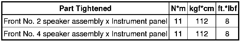 SPECIFICATIONS: AUDIO / VIDEO: TORQUE SPECIFICATIONS