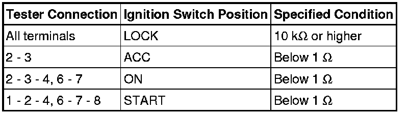 12. INSPECT IGNITION SWITCH ASSEMBLY