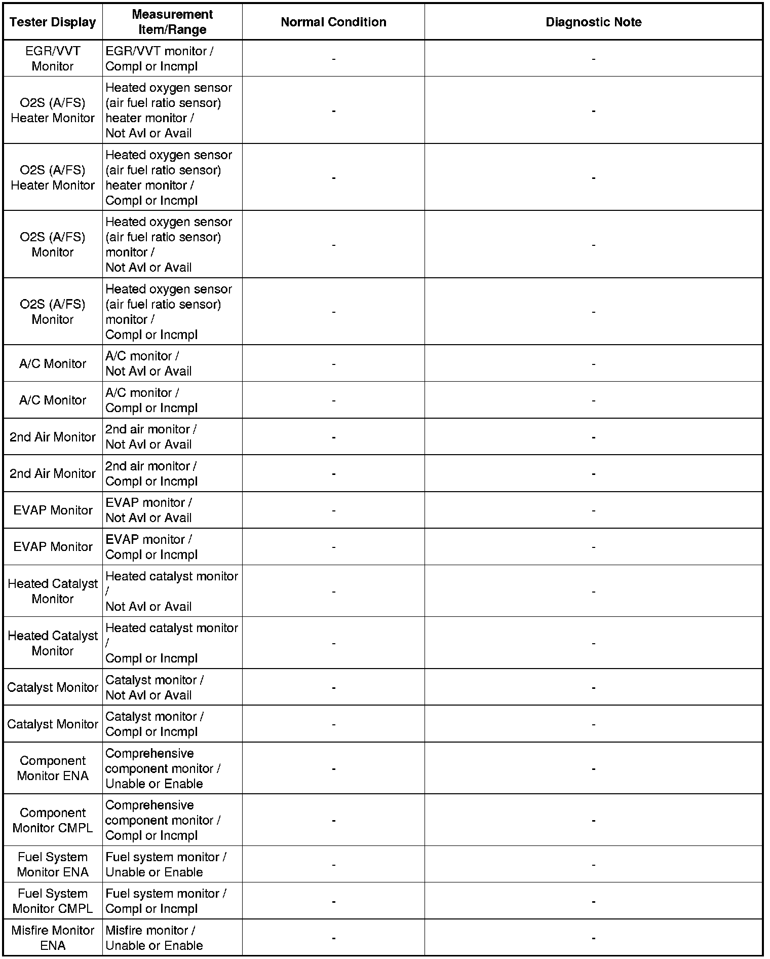 In the table below, the values listed under "Normal Condition" are reference values. Do not depend solely on these reference values when deciding whether a part is faulty or not.