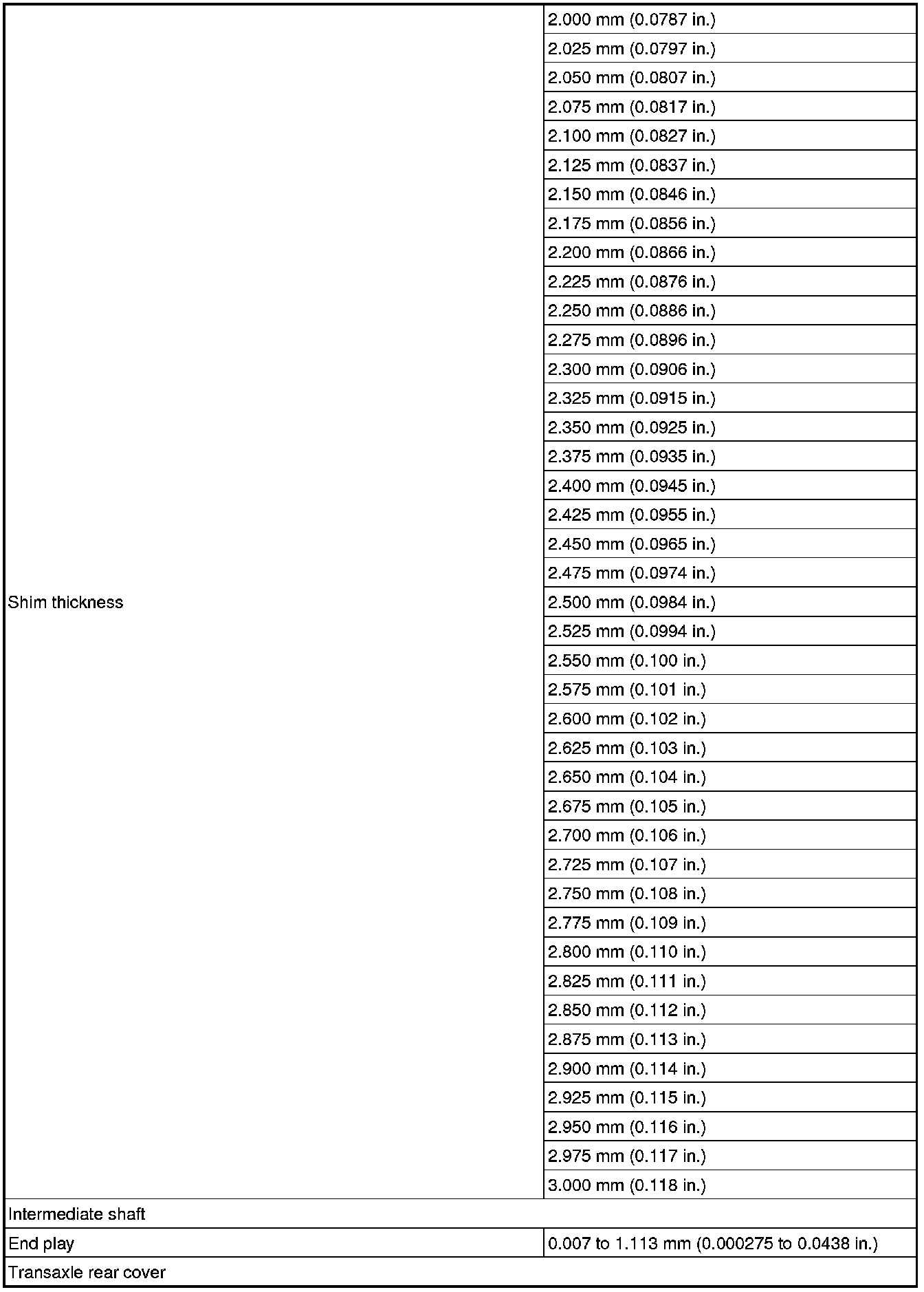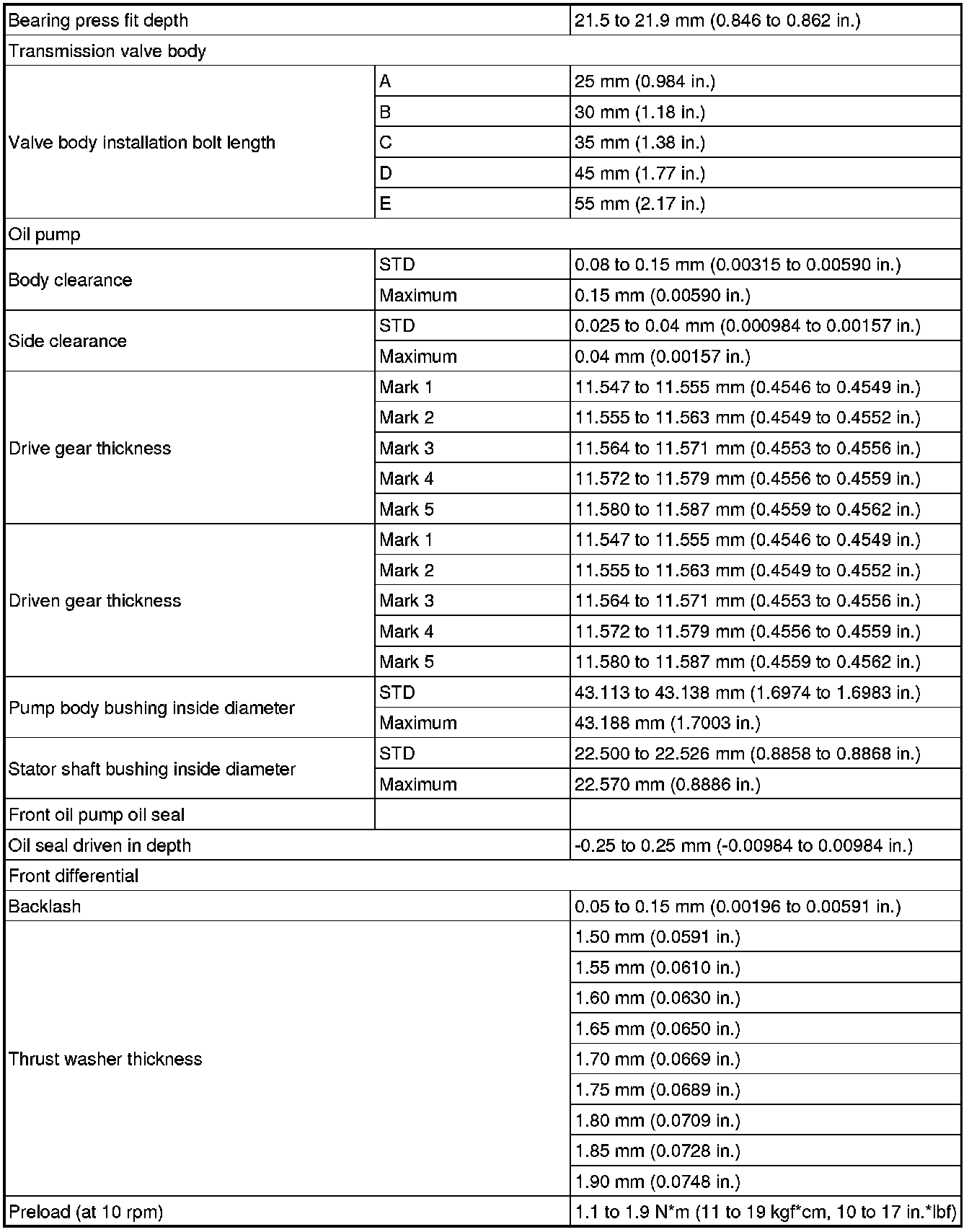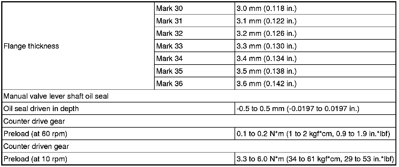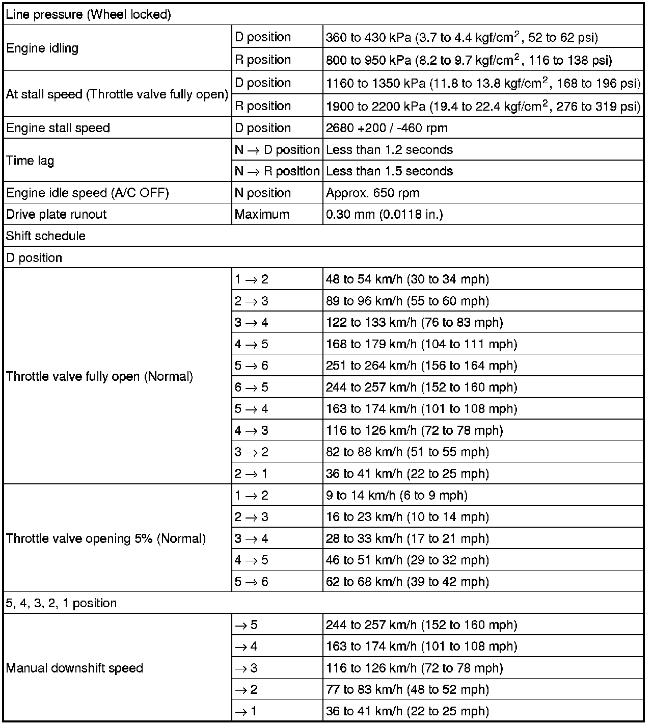 SPECIFICATIONS: U660F AUTOMATIC TRANSMISSION / TRANSAXLE: SERVICE DATA