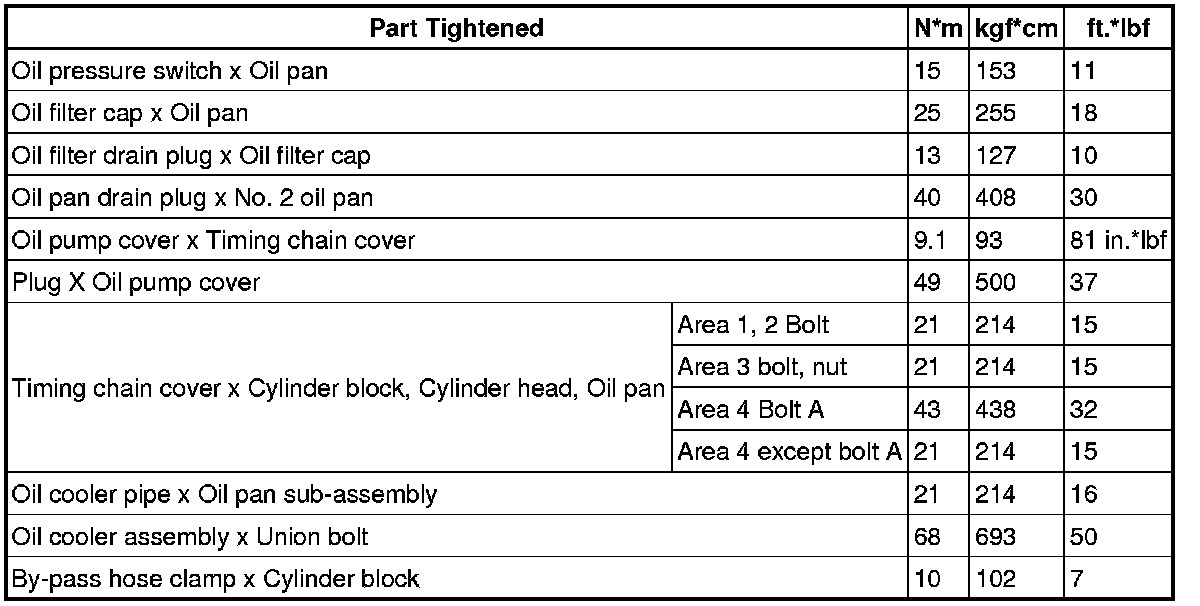 SPECIFICATIONS: 2GR-FE LUBRICATION: TORQUE SPECIFICATIONS