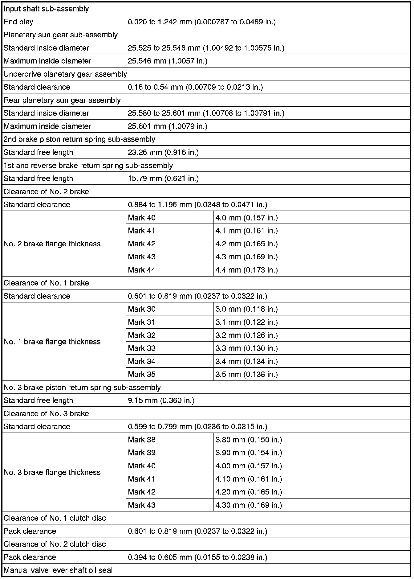 SPECIFICATIONS: U760E AUTOMATIC TRANSMISSION / TRANSAXLE: SERVICE DATA