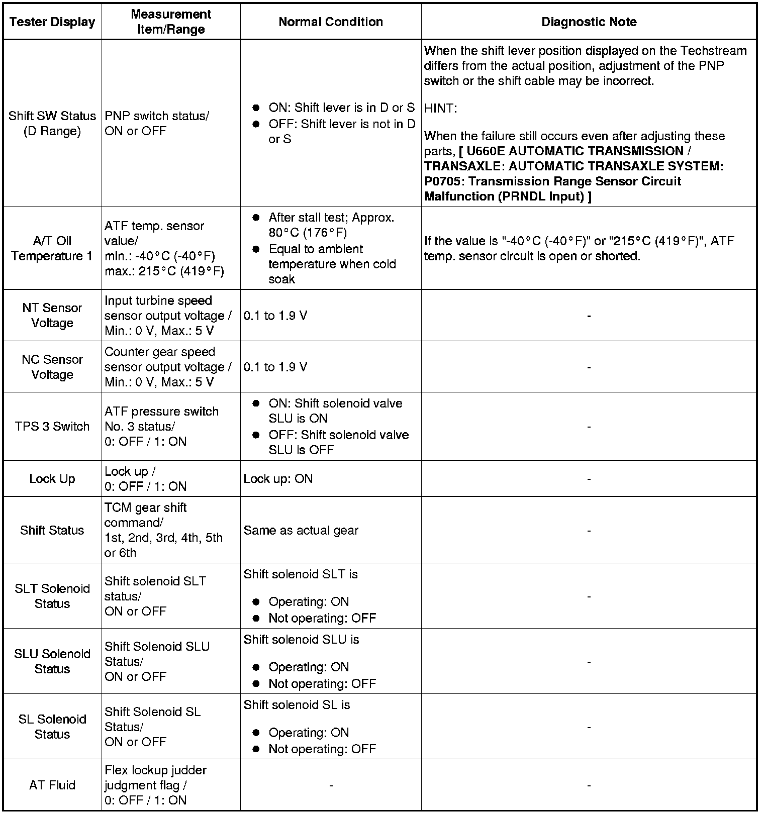 U660E AUTOMATIC TRANSMISSION / TRANSAXLE: AUTOMATIC TRANSAXLE SYSTEM: DATA LIST / ACTIVE TEST