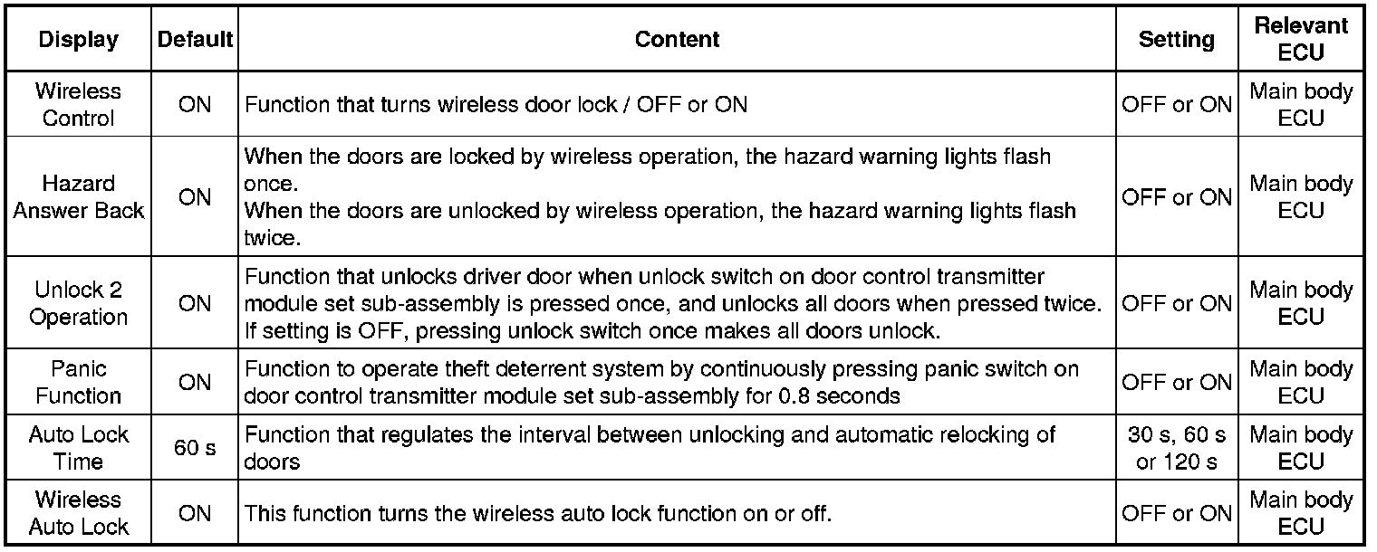 DOOR LOCK: WIRELESS DOOR LOCK CONTROL SYSTEM (for Hatchback): CUSTOMIZE PARAMETERS