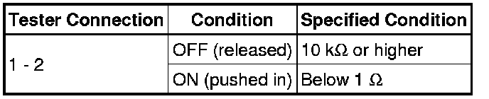 If the result is not as specified, replace the No. 2 clutch start switch assembly.