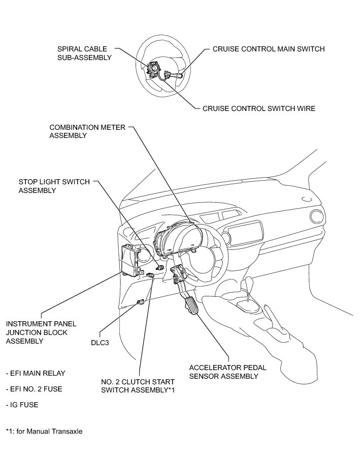CRUISE CONTROL: CRUISE CONTROL SYSTEM (for Hatchback): PARTS LOCATION