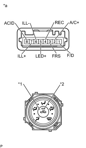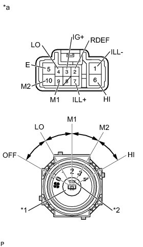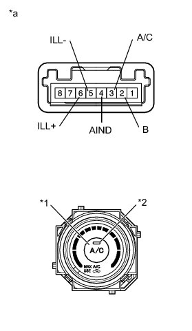 (1) Connect the positive (+) lead from the battery to terminal 7 (ILL+) and the negative (-) lead to terminal 1 (ILL-), then check that the bulb illuminates.
