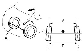 (f) Measure the distance between the tread center marks on the front side of the wheels (Dimension A).