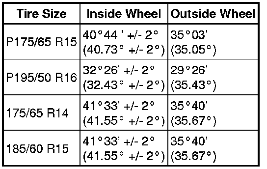 Wheel Turning Angle (Unloaded Vehicle)