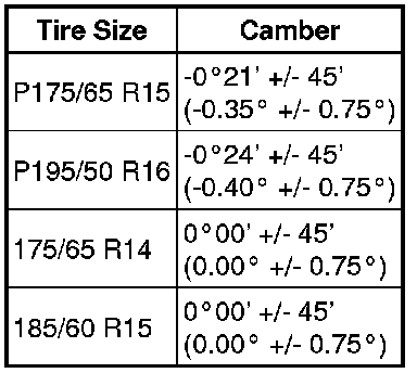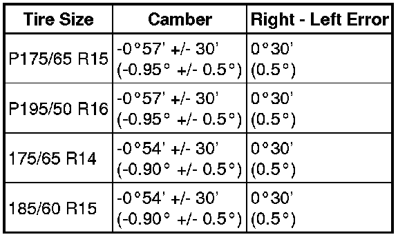 Camber Inclination (Unloaded Vehicle)
