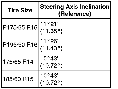Steering Axis Inclination (Unloaded Vehicle)