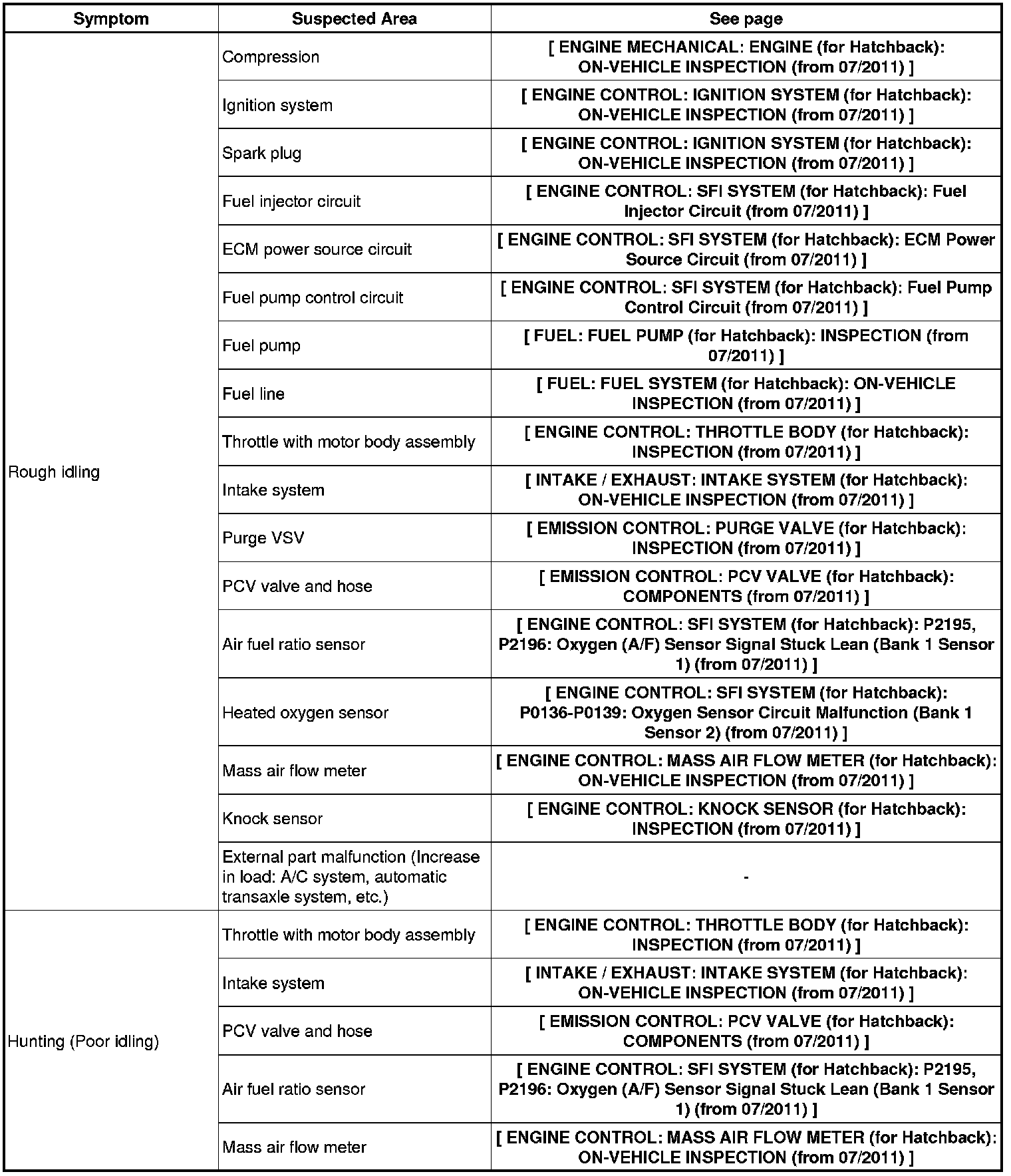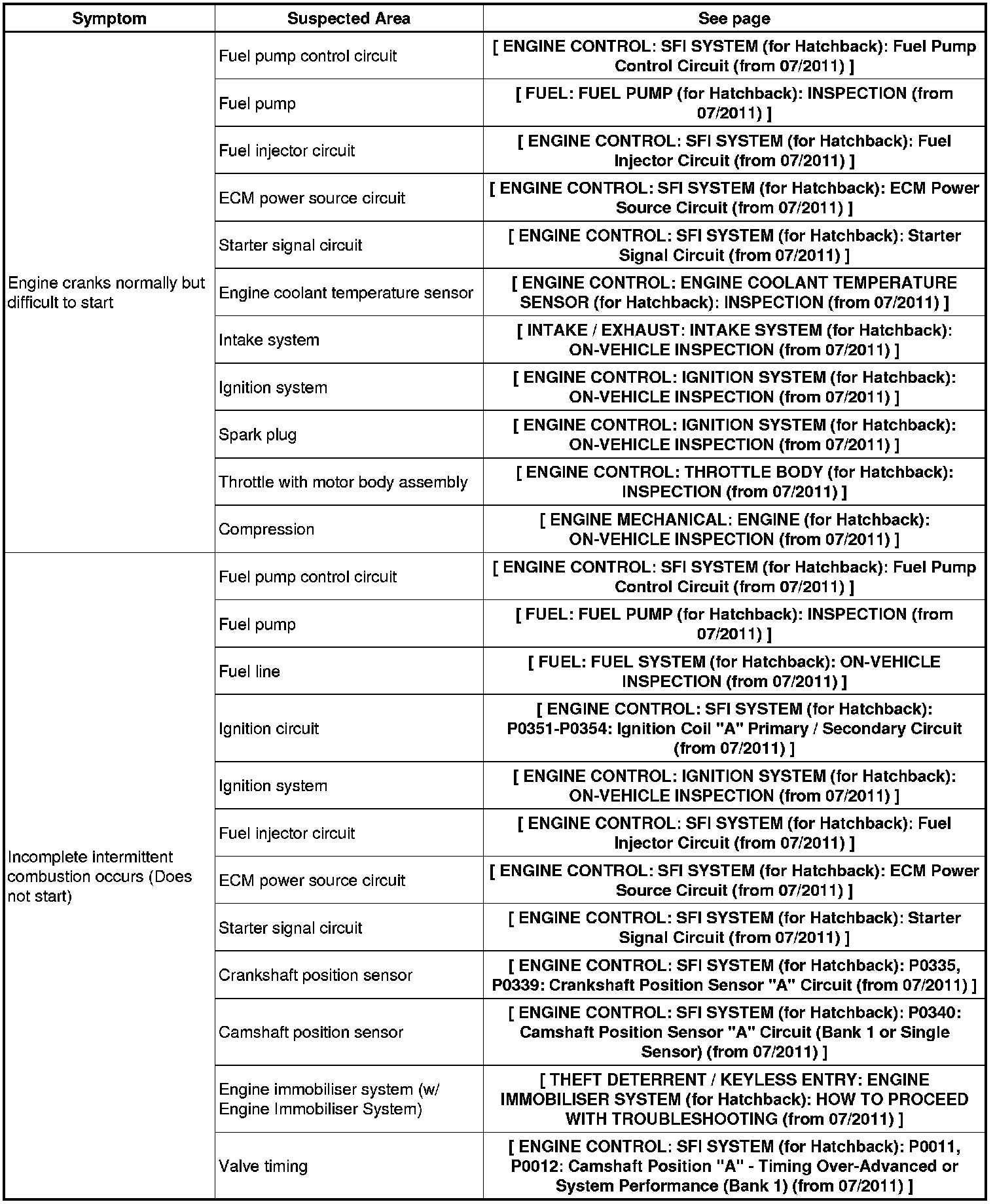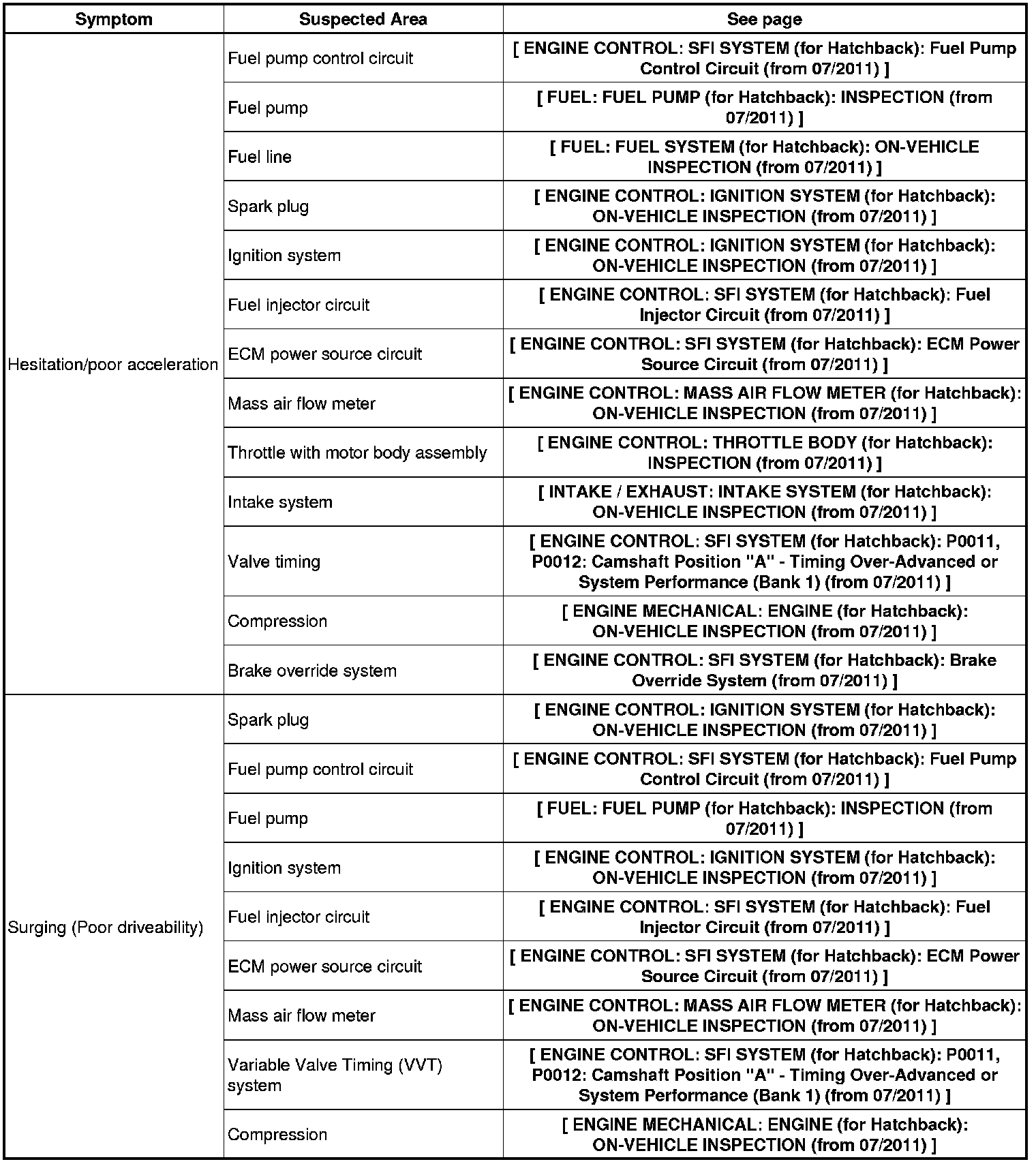 1NZ-FE ENGINE CONTROL: SFI SYSTEM (for Hatchback): PROBLEM SYMPTOMS TABLE