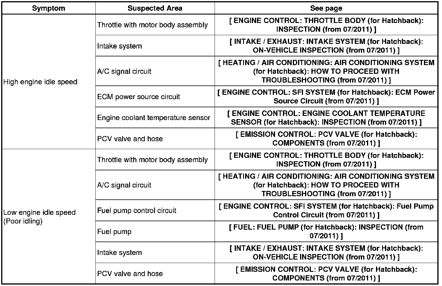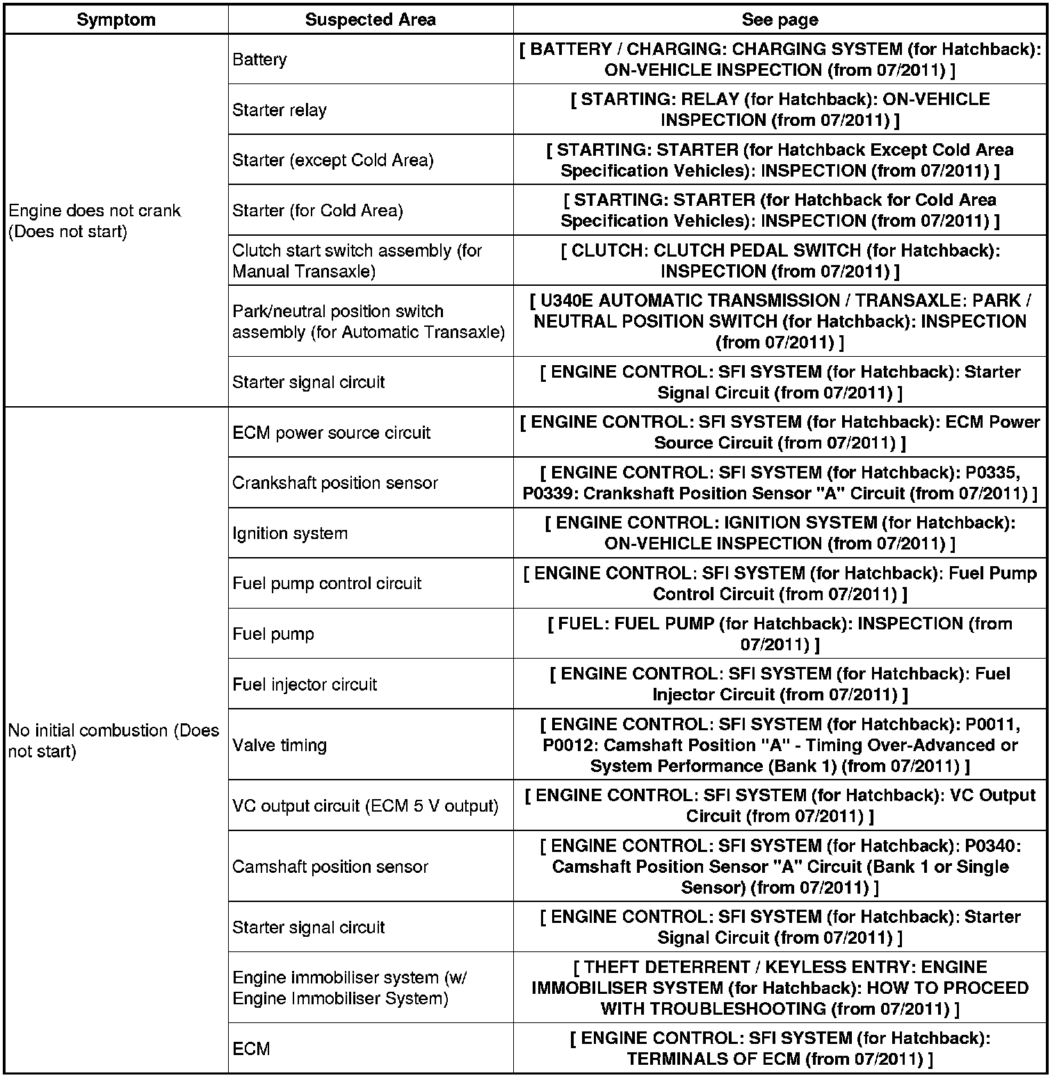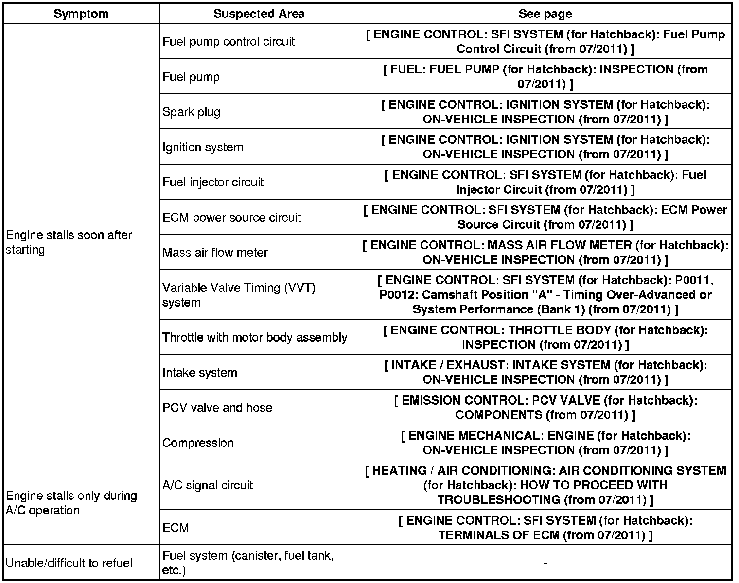 1NZ-FE ENGINE CONTROL: SFI SYSTEM (for Hatchback): PROBLEM SYMPTOMS TABLE