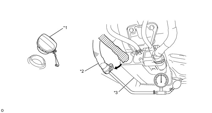 Perform this inspection with the fuel tank less than 90% full. When the fuel tank is full, the fuel cutoff valve closes and the pressure is released through the 2 mm orifice. As a result, when the fuel tank cap is removed, the pressure does not decrease smoothly.